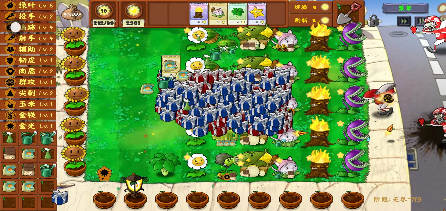 是不是?最少的植物通关无尽119波。