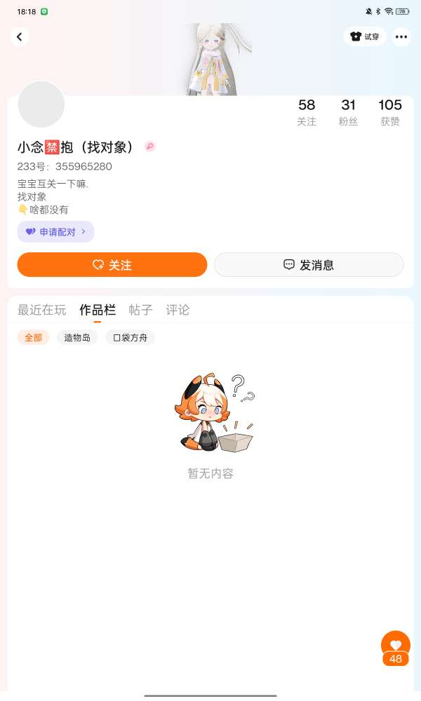 (想个男朋友)作者经常不在线