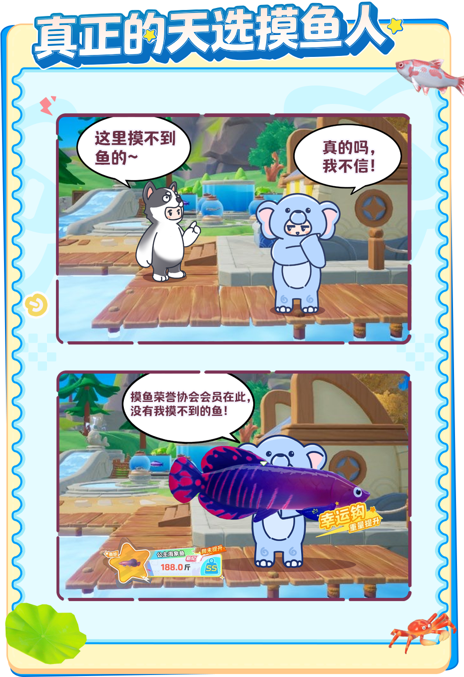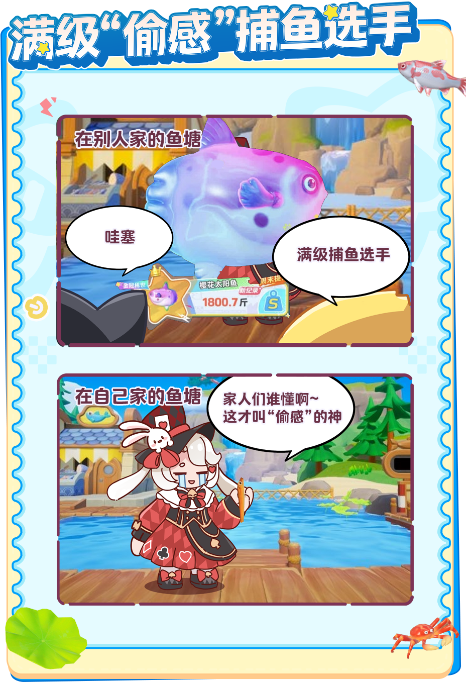 听说星宝们自从有了自己的鱼塘,成为元梦新晋钓鱼佬之后,身份也开始百变起来了~星妹可真的是太好奇了,除了鱼塘主之外,星宝们到底会有什么令人意想不到的神秘身份呢?来和星妹一起看看吧~