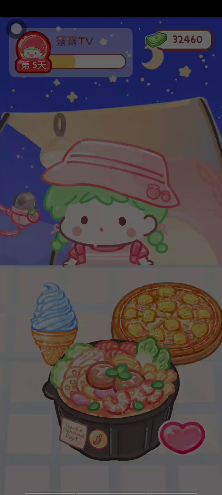 更新宠物!!! 「你进行草莓糖葫芦吃播的话,我就赞助100元。」 「脆口的声音太迷人了(°θ°)」 由于客人都被最近新开的许多糖葫芦店家抢走,曾经号称糖葫芦达人的父母因此卧病在床。 继承父母店面的主角露露开始糖葫芦吃播来宣传店面。 直到成为真正的糖葫芦达人那一天! 「今天我也要开始糖葫芦直播罗!( •o• )」 [串材料] 只有新鲜的水果的话,很难以一名吃播实况主存活下来。还要有松饼、地球软糖、青阳辣椒!利用奇特的材料制作糖葫芦吧。 [裹糖衣] 将材料串满竹签的话,就放进锅子搅动吧。唯有利用达人的秘法,才能裹出又薄又脆的糖衣。 [即时吃播] 咔哒咔哒!今天的吃播也大成功。热烈的聊天内容看起来反应也不错。看来得利用完成观众任务得到的赞助金来买新材料了! 来,准备好了吧?现在就马上挑战成为糖葫芦达人吧!