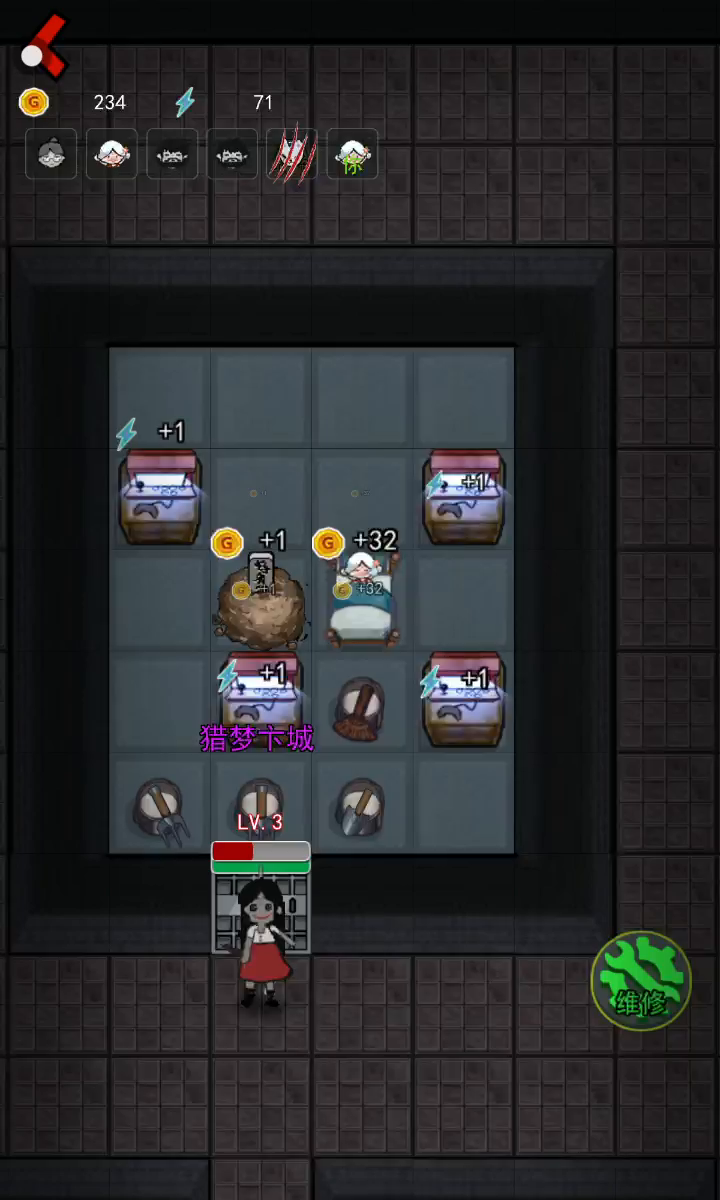 《猛鬼宿舍》是一款2D塔防小游戏。游戏中玩家需躲避猛鬼的追捕,寻找适合自己的宿舍躲避,并发展经济建造炮台,抵御猛鬼。游戏中玩家只可以在房间中的空地板上进行建造,玩家点击空地板后,出现建筑菜单。游戏中玩家需要根据自己当前的经济选择性建造建筑,发现一条符合自己发展的道路。玩家需要将鬼击败或者抵御至天亮方可获胜,反之鬼抓到玩家则玩家失败。