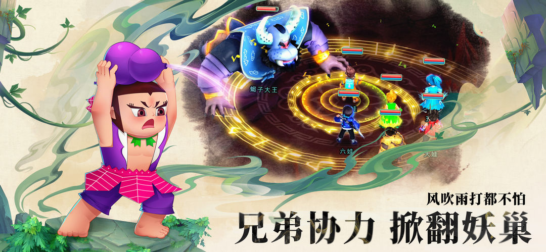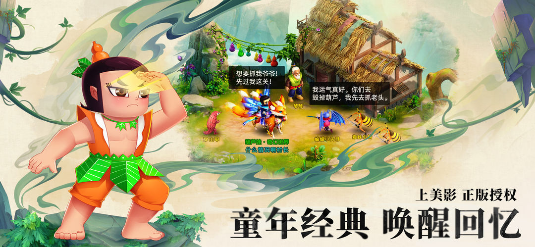 《葫芦娃·奇幻世界》为上美影正版授权《葫芦兄弟》角色扮演手游,在世界塑造、场景描绘等方面完美还原几代人心中的童年经典,主线剧情中穿插原版动画更是唤醒儿时守在电视机前,看“葫芦七兄弟”拯救爷爷精彩故事的回忆。除了七位“葫芦兄弟”完美还原外,原作动画中的“蝎子大王”、“金蛇大王”等妖怪也在《葫芦娃·奇幻世界》中以原汁原味的形象登场,助力各位玩家圆儿时降妖除魔的梦想。