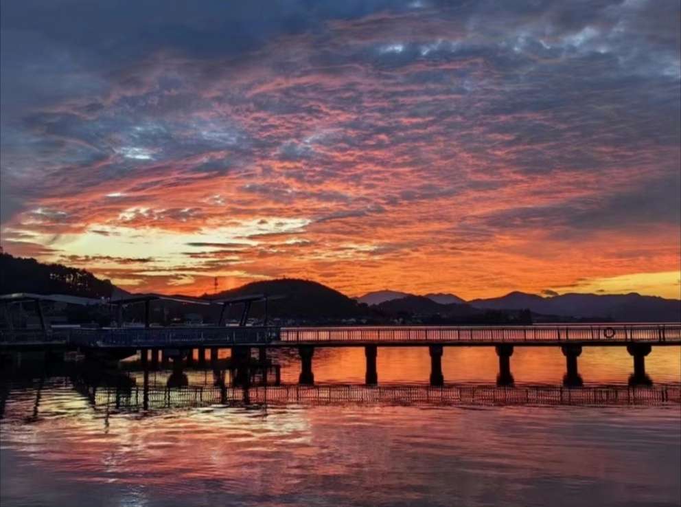 "今天去我农村桥码头拍美景喽,日落”拍摄#日落美景#珍惜眼前一切美好@老妈