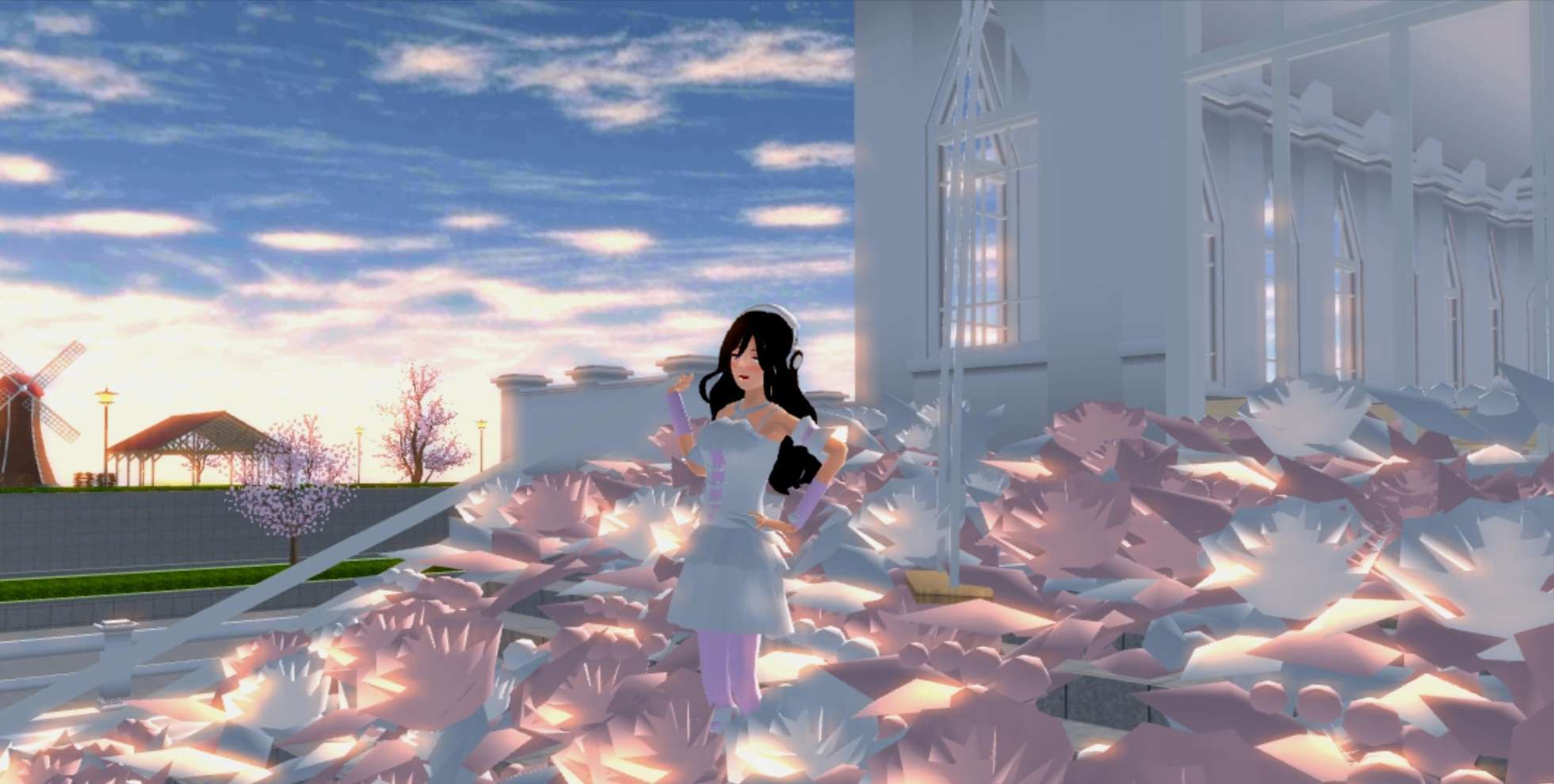 『清晨光下,漫花飞舞』