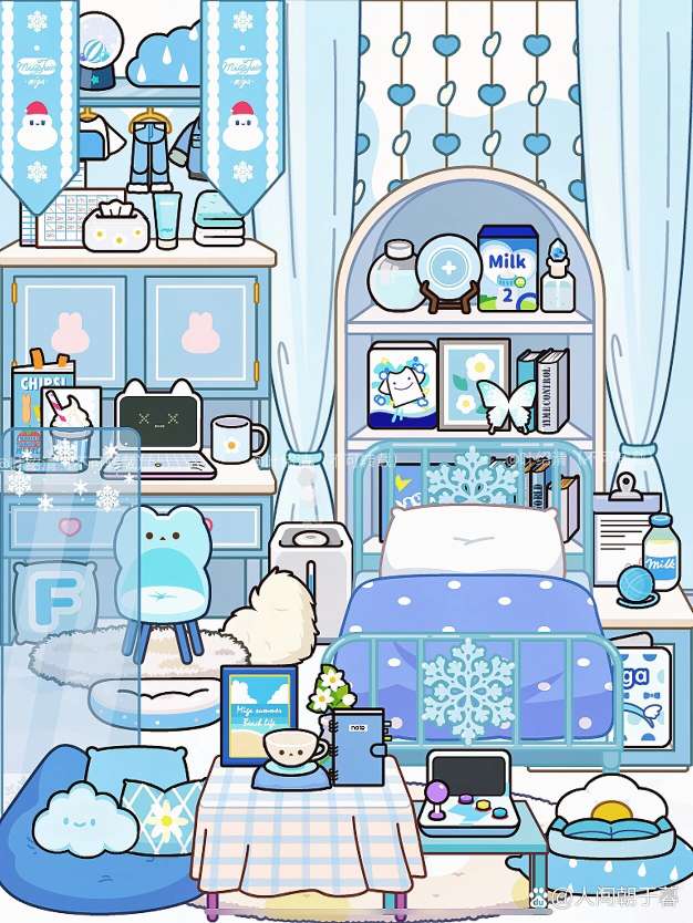米加小镇|蓝色系💙小屋布置全景图