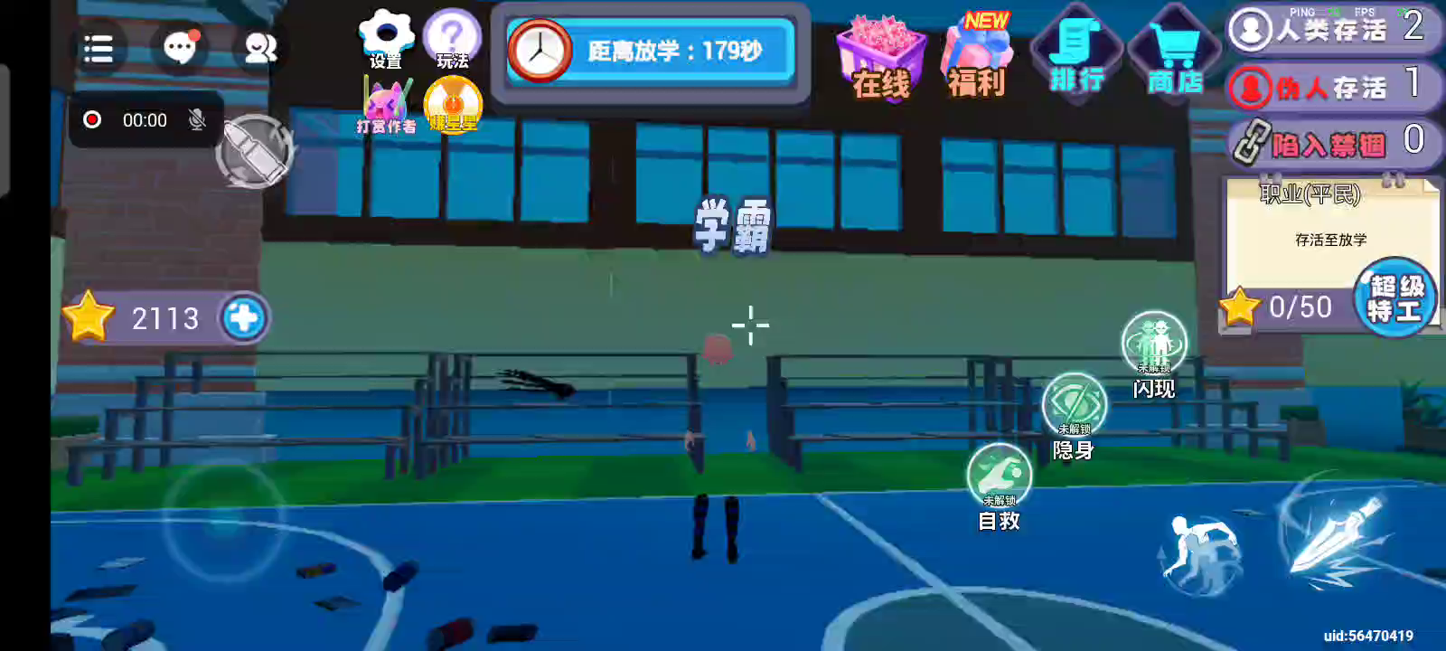 规则怪谈学校混入了一名怪物杀手,拾取星星升级成为特工可获得武器,找出伪人杀手挑战他,在战斗中击败他即可获得胜利。多拾取星星可获得移速成长升属性。或者坚持到放学逃离学校也可以获得胜利,躲猫猫排行榜上有你的传说吗?
