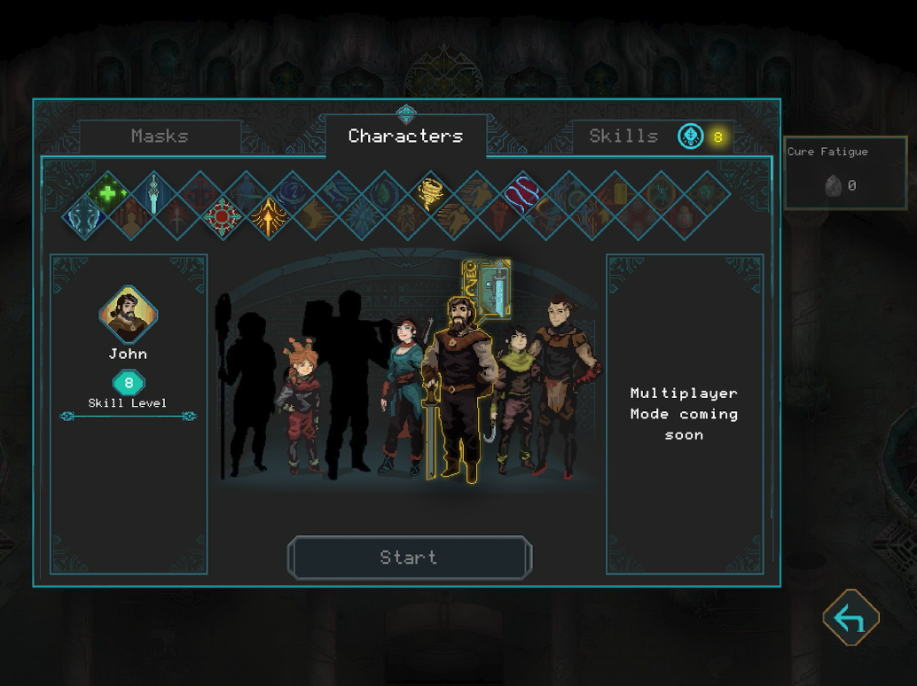 游戏中共有7个具备独特能力的家族成员供玩家选择:佩着剑与盾,保护意识强烈的父亲John;神准的弓箭手,大女儿Linda;沉默寡言,以致命匕首为武器的Kevin;性格火热的勇敢火魔法师Lucy;具有卓越觉察力的格斗家Mark;用大锤粉碎敌人的Joey;以及家族的最新成员Apan,她既是强大的医者,也是坚定的保护者。