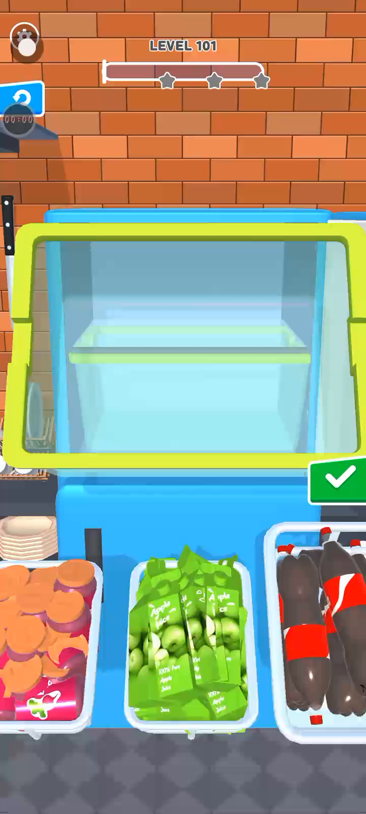 购物节已经开始,是时候购买物品并装满冰箱了! 您需要在食物变质之前用很多物品装满冰箱,这需要您考虑不同物品的大小和高度,使用所有可能的空间,所有角落! 听起来很难,但真的很有趣!开始购买您的物品,找到最佳的冰箱补货策略!