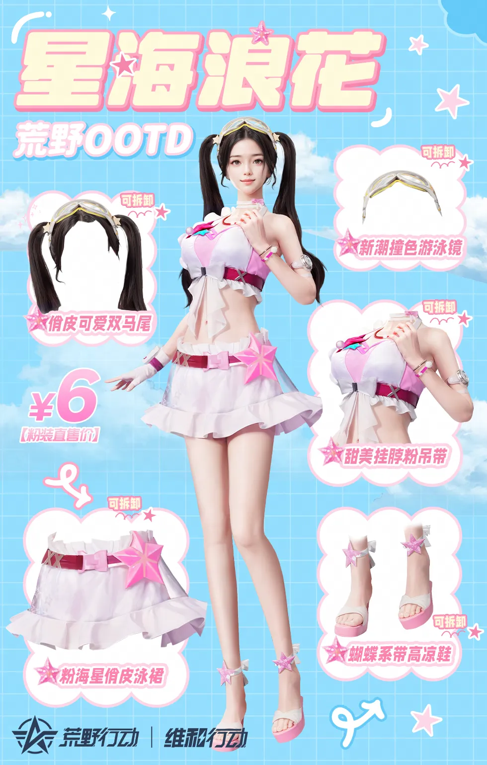 还不满意?那让全体荒友都能穿上心心念念的泳装总可以了吧?8月1日,【星海浪花/星海盛夏】6元上架,可别说荒弟不宠你们嗷!