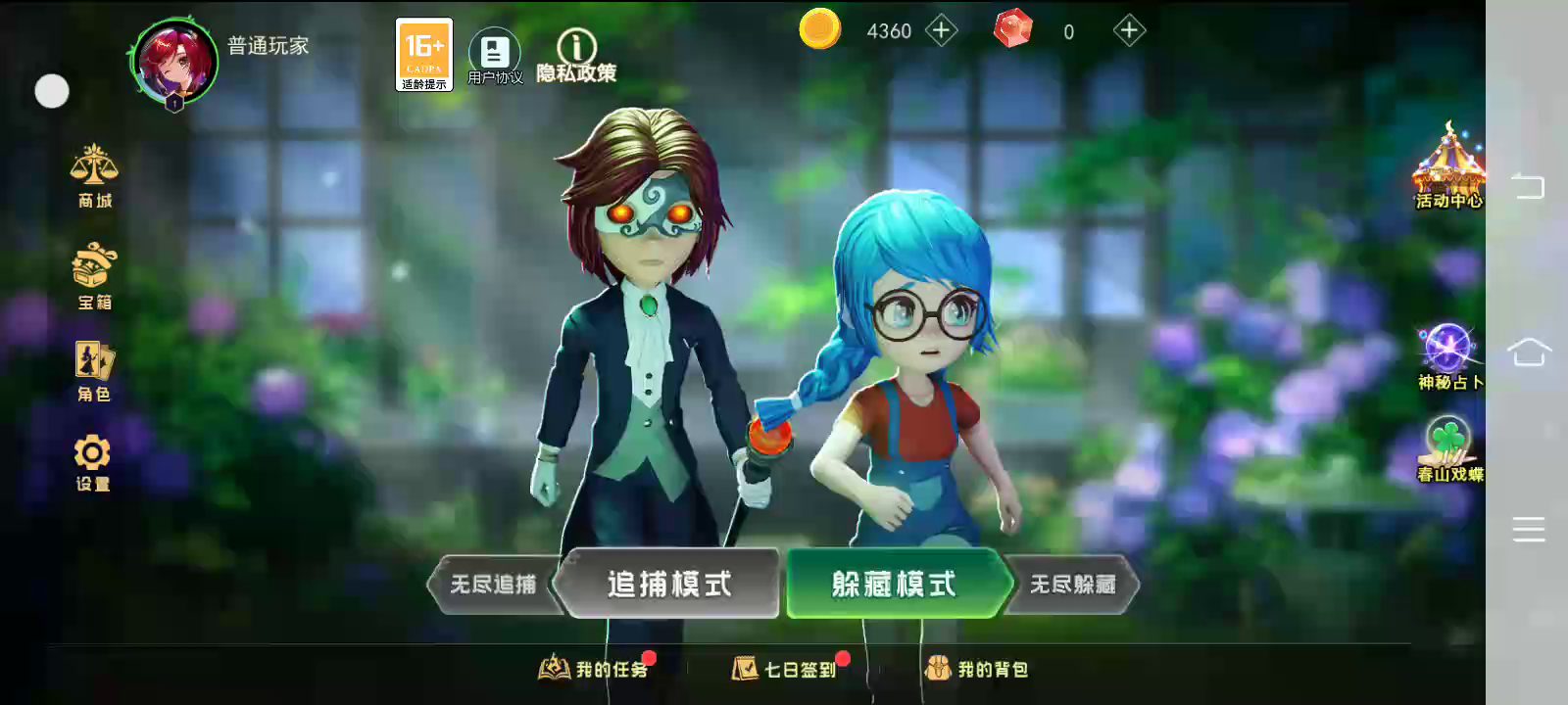 《恐怖躲猫猫3》是一款休闲竞技对抗游戏,游戏背景为四位不同身份的冒险者被困在梦境中的凋零墓园内,凋零墓园中封印着怪物,大钟时间一到,冒险者的到来使怪物苏醒并对冒险者们展开追击。冒险者们需要躲避怪物的追击,同时收集四颗不同元素的光球并镶嵌在相应元素的雕像上激活雕像,才可以激活次元大门,逃出墓园并从噩梦中醒来,否则就将被永远困在无尽的噩梦之中。