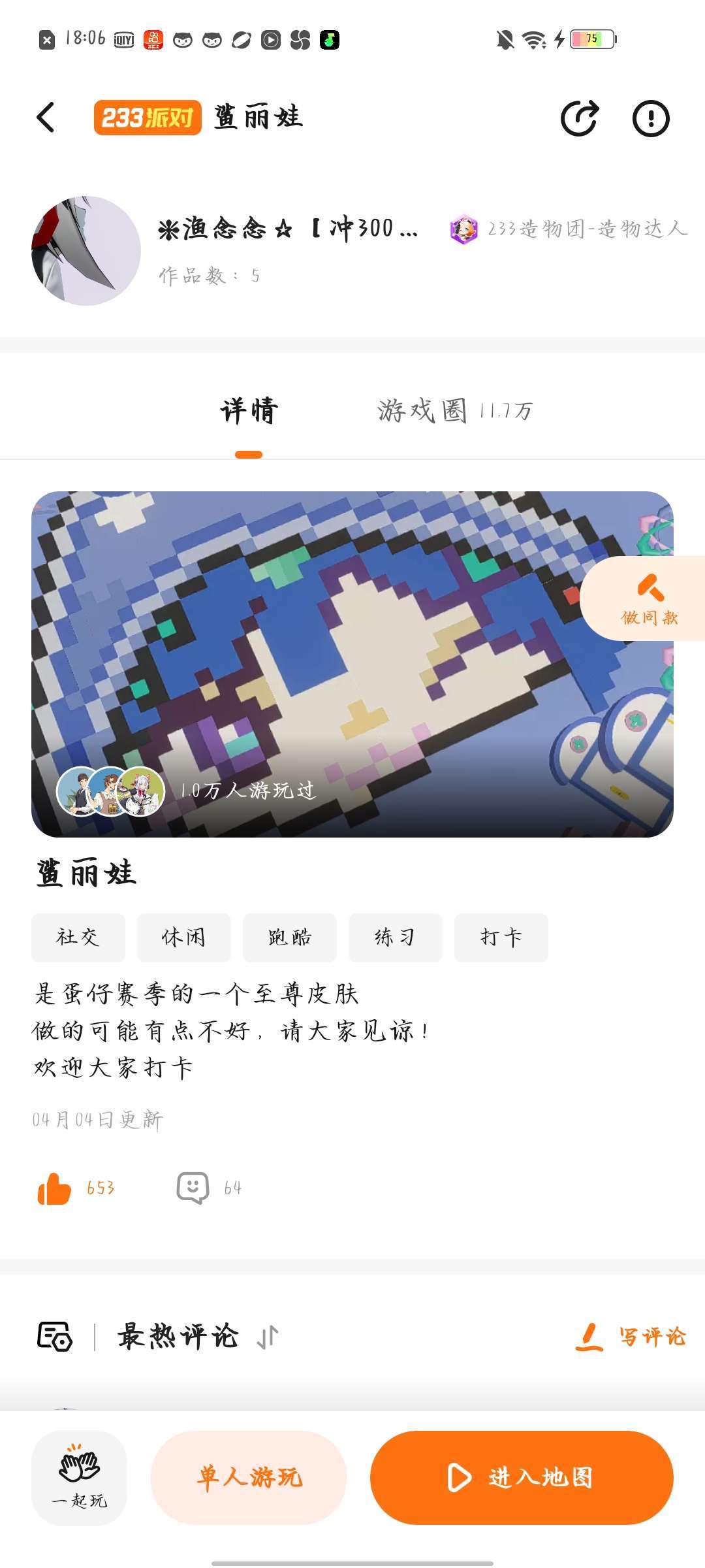 作品到达1万人游玩啦!!! 此作品传送门↓ 有兴趣的可以去游玩