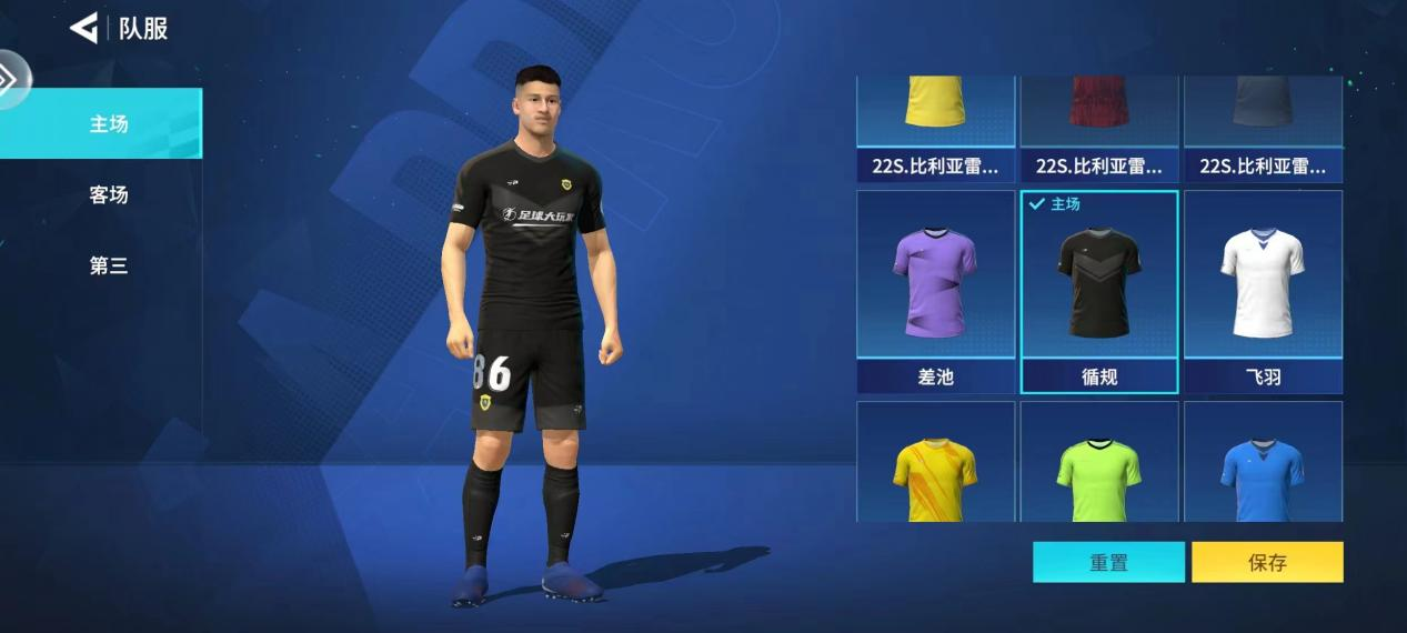 队服设计独具特色,主场、客场和第三队服拥有丰富的款式供玩家选择,每一款都展现出独特的设计理念。玩家可以根据自己的喜好进行重置和保存,打造出独一无二的球队形象,展现球队的个性与风采。