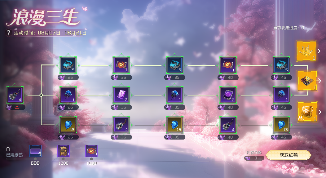 于千万人中,许你三生情缘!完成指定任务获得纸鹤,消耗对应数量的纸鹤可解锁节点奖励,共有聚核晶源、超凡芯片晶体、S级战甲组件(绑定)三种不同的奖励可以获取哦~