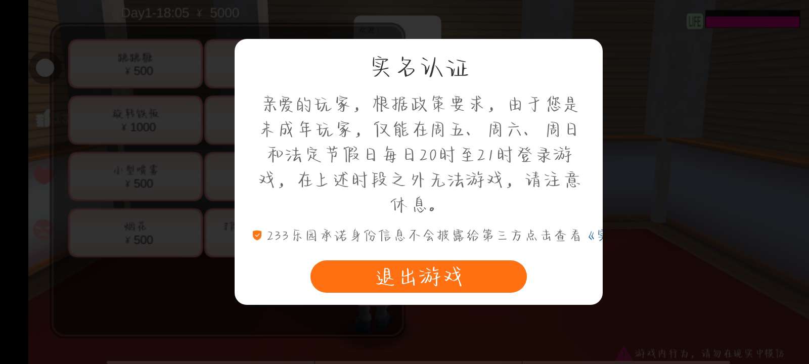 我就想说了,233官方。你你那个实名认证了。也只能在周五周六周日的晚上8点玩。还只能玩一个小时。