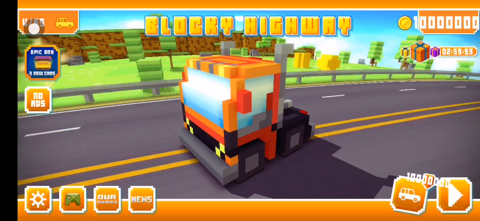 进入游戏赠送大量货币 与普通的竞速跑酷游戏类似,玩家需要驾驶一辆小车在高速路上疾驰,避开各种障碍与车辆并且搜集金币,而金币则是用来解锁更多的车种,甚至坦克都能有。游戏画面清爽简单,虚拟按键的控制方式也非常容易上手,不过虽然是一款主打像素风的作品,画面色泽却非常鲜艳,大大降低了像素风格的违和感。