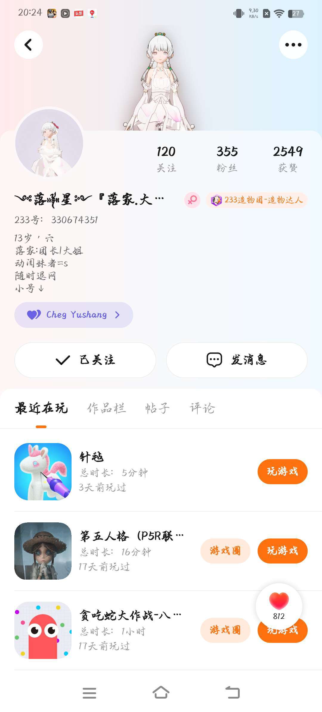 单推一个人希望大家都去关注她她人很好的人美心善谢谢了