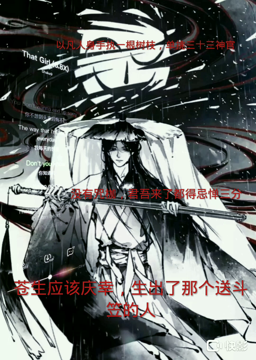 谢怜曾以凡人之身手执一根树枝,单挑三十三神官