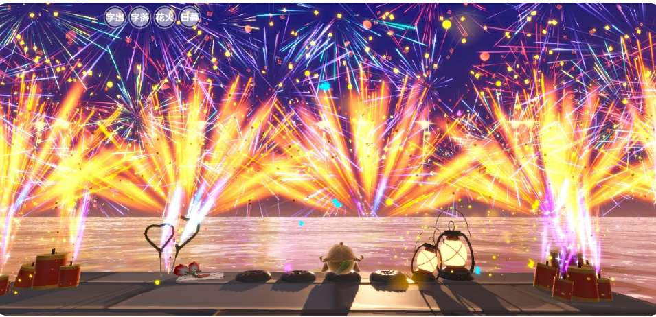 的左上角,我们可以操纵,想让烟花出现就让烟花出现,让
