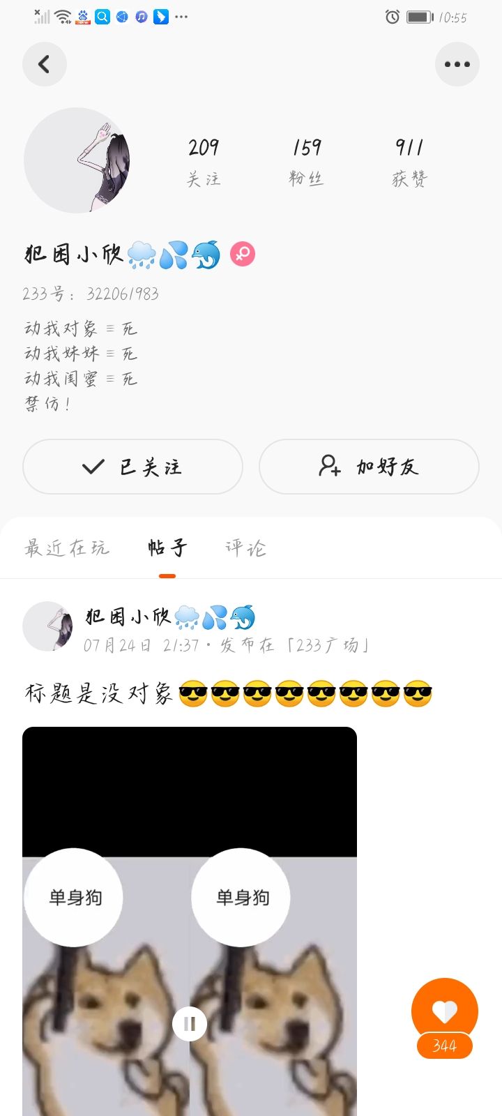 @犯困小欣,不管是不是你把我的账号弄成这个样子,我希望你赶紧给我还回来,之前她上我号,我没觉得什么