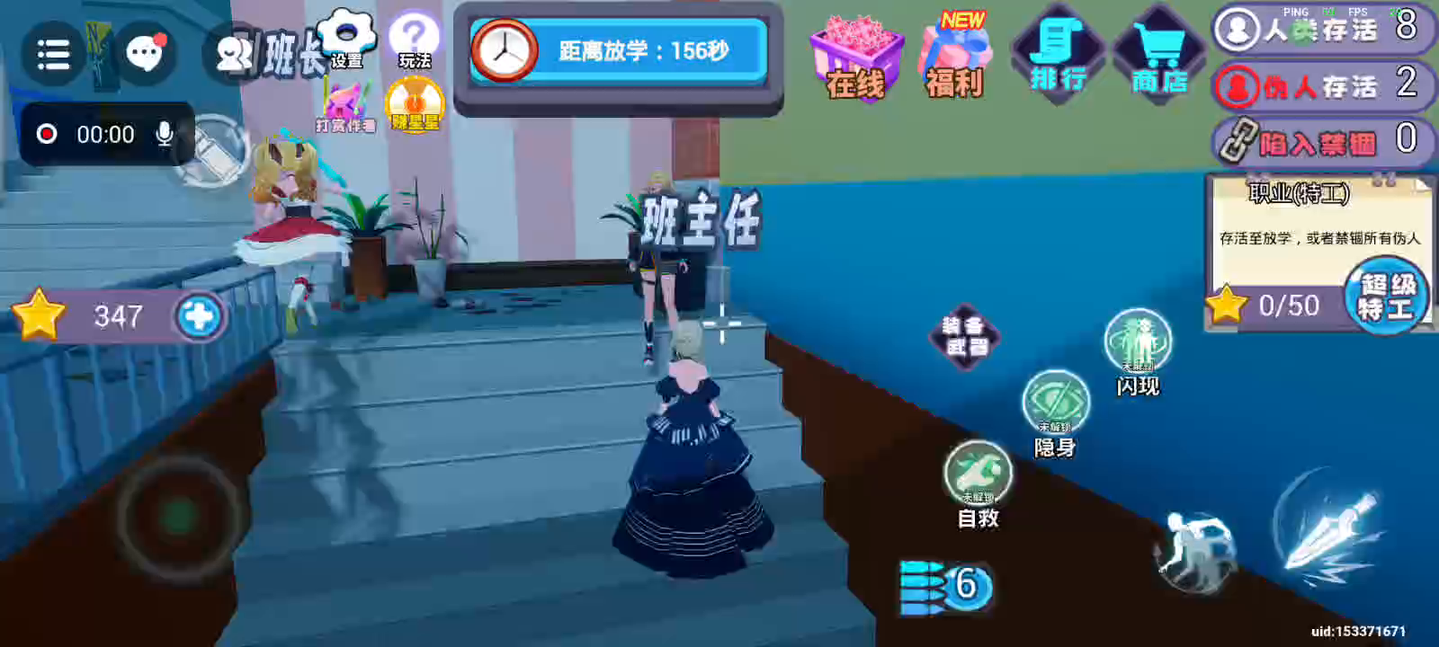 规则怪谈学校混入了一名怪物杀手,拾取星星升级成为特工可获得武器,找出伪人杀手挑战他,在战斗中击败他即可获得胜利。多拾取星星可获得移速成长升属性。或者坚持到放学逃离学校也可以获得胜利,躲猫猫排行榜上有你的传说吗?