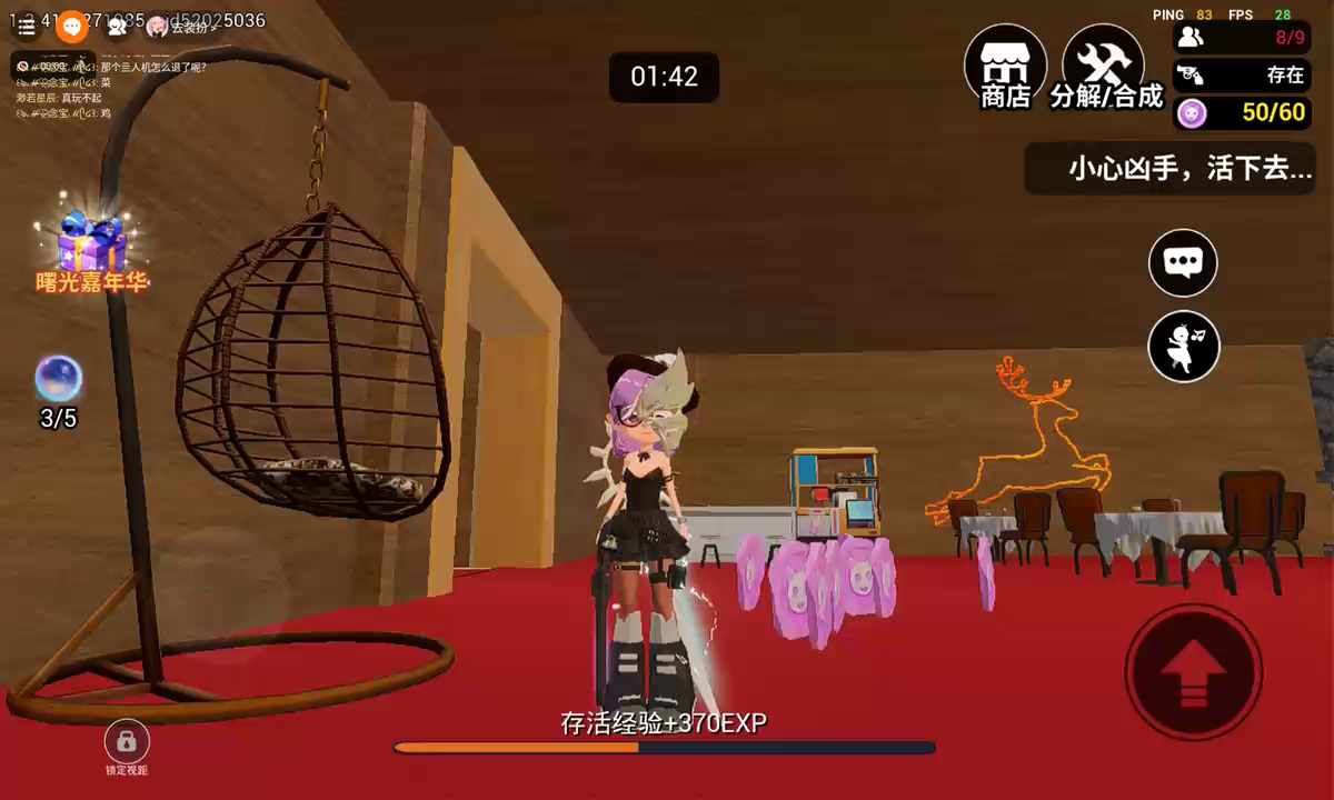 选择你最爱的武器来参加比赛! 时刻盯紧飞向你的球,在即将打到你时点击“反弹”按钮将它弹飞,和其他人竞争活到最后! 超越其他人吧,成为排行榜最耀眼的那个人! 【8月2日更新内容】 1.新增三张奥运系列地图。 2.新增翅膀系统,身份的象征~ 3.新增快速装扮,同步233平台形象。 花费派对币购买装扮会获得等额金币返还。 4.新增热舞整合包2。 内含舞蹈三拜红尘凉、stitches、You三段舞蹈。 5.新增全新模式-挑战BOSS模式。 强大的怪兽需要小可爱们联合抵抗!参与该模式将获得大量金币哦~ 6.新增“零元购”武器-量子光刃。 活动期间,所有购买武器“量子光刃”的玩家,可以在此游戏内“零元购”界面发起退款,退款后将全额返还消耗的派对币,但武器还可以继续拥有,不会进行回收! 7.新增BOSS武器-流彩晶镰。 可以在BOSS模式地图内花费金币抽取哦~ 8.修复其他问题。 如果小可爱们发现有物品购买不了的话,请将233乐园升级到最新的版本哦!