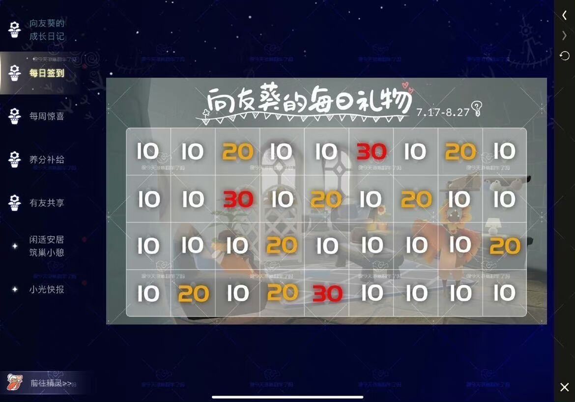 图6 有友节签到每个格子对应阳光数目