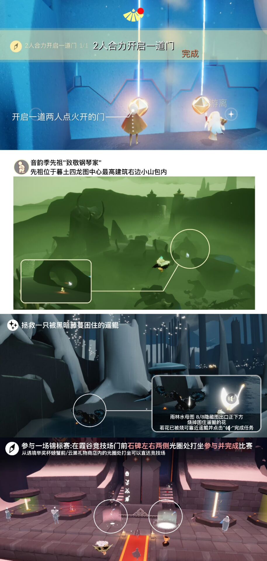 《光遇》游戏中每天的每日任务及大蜡烛的位置都不相同,玩家完成每日任务及收集大蜡烛都可以得到丰厚的兑换奖励,奖励可以用于兑换各种动作及道具,不过很多小伙伴不知道每日任务怎么做,又懒得自己去找大蜡烛的位置,我们汇总了每日任务的完成攻略以及蜡烛位置,一起来看看吧!
