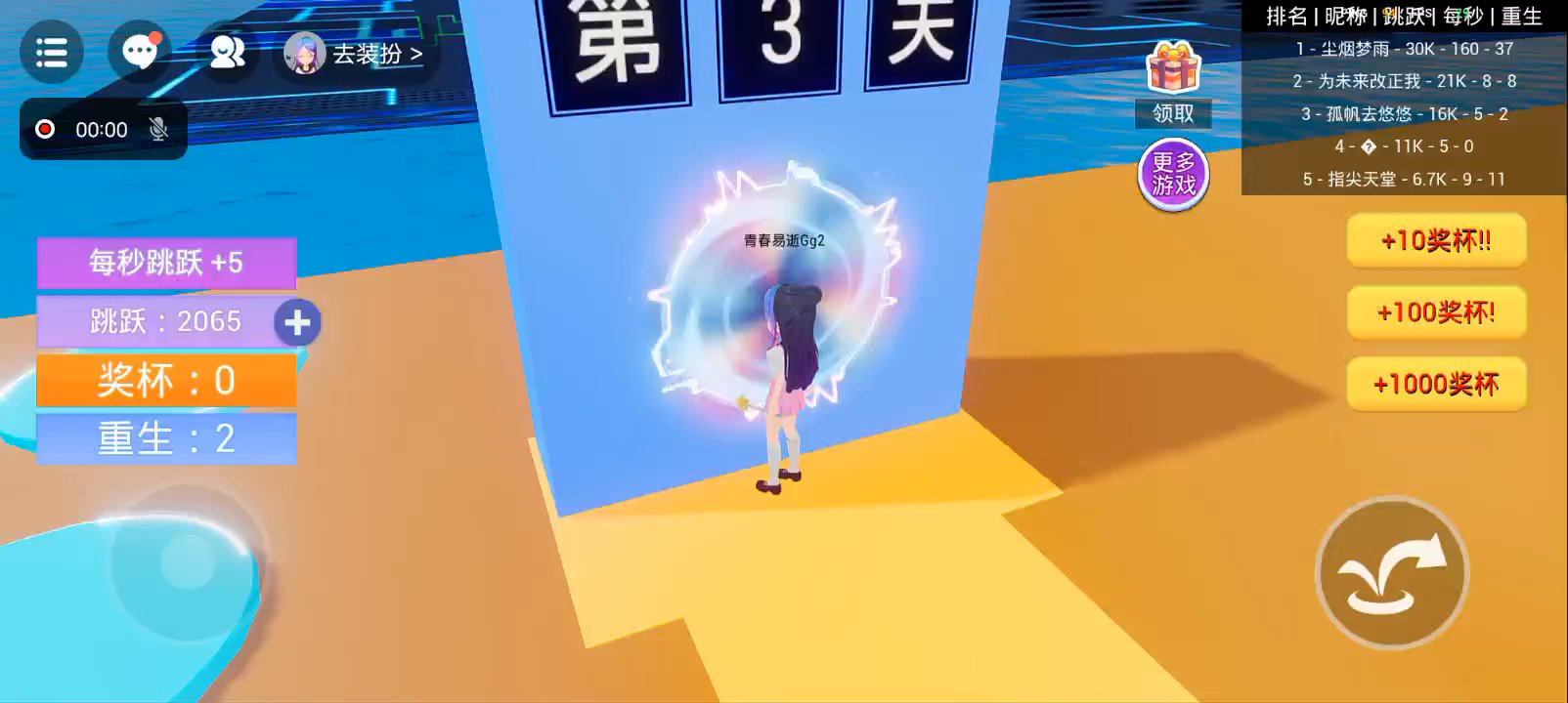 欢迎来到《看谁跳的高》,每秒跳跃值都会增加,跳到塔顶重生,就可以获得奖杯。用奖杯进行抽奖,可以增加每秒增加的跳跃值。 把你的最好成绩截图获录制视频发到游戏圈,让别人羡慕一下吧~
