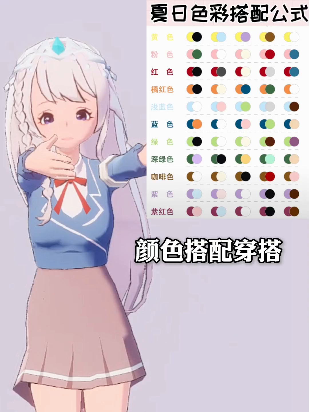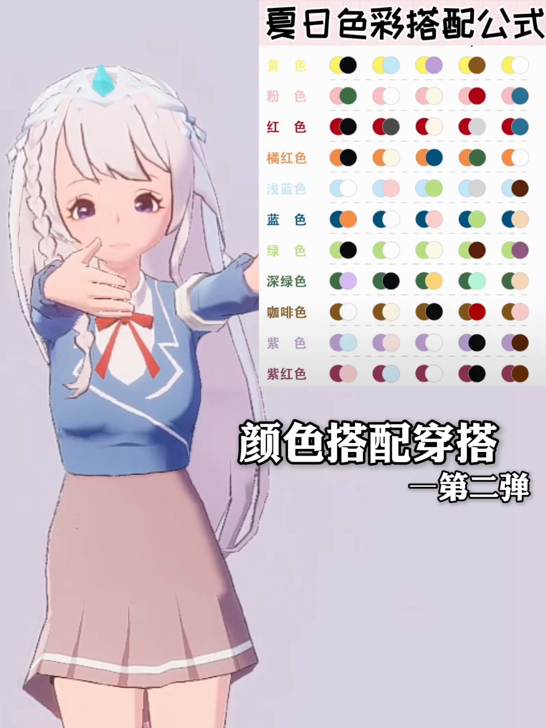 这是一场虚拟服装颜色搭配挑战,展示了蓝白、蓝粉、红黑等配色的虚拟服装设计,还附上夏日色彩搭配公式,为虚拟服装色彩搭配提供参考。