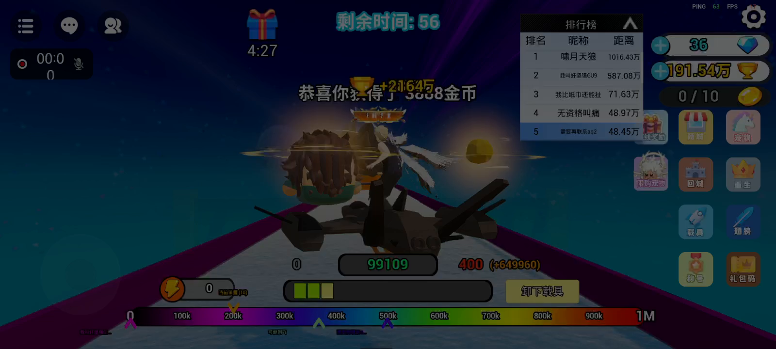 但是我那个还有会飞,飞起来比你们所有都要快,全场第一,我拿下