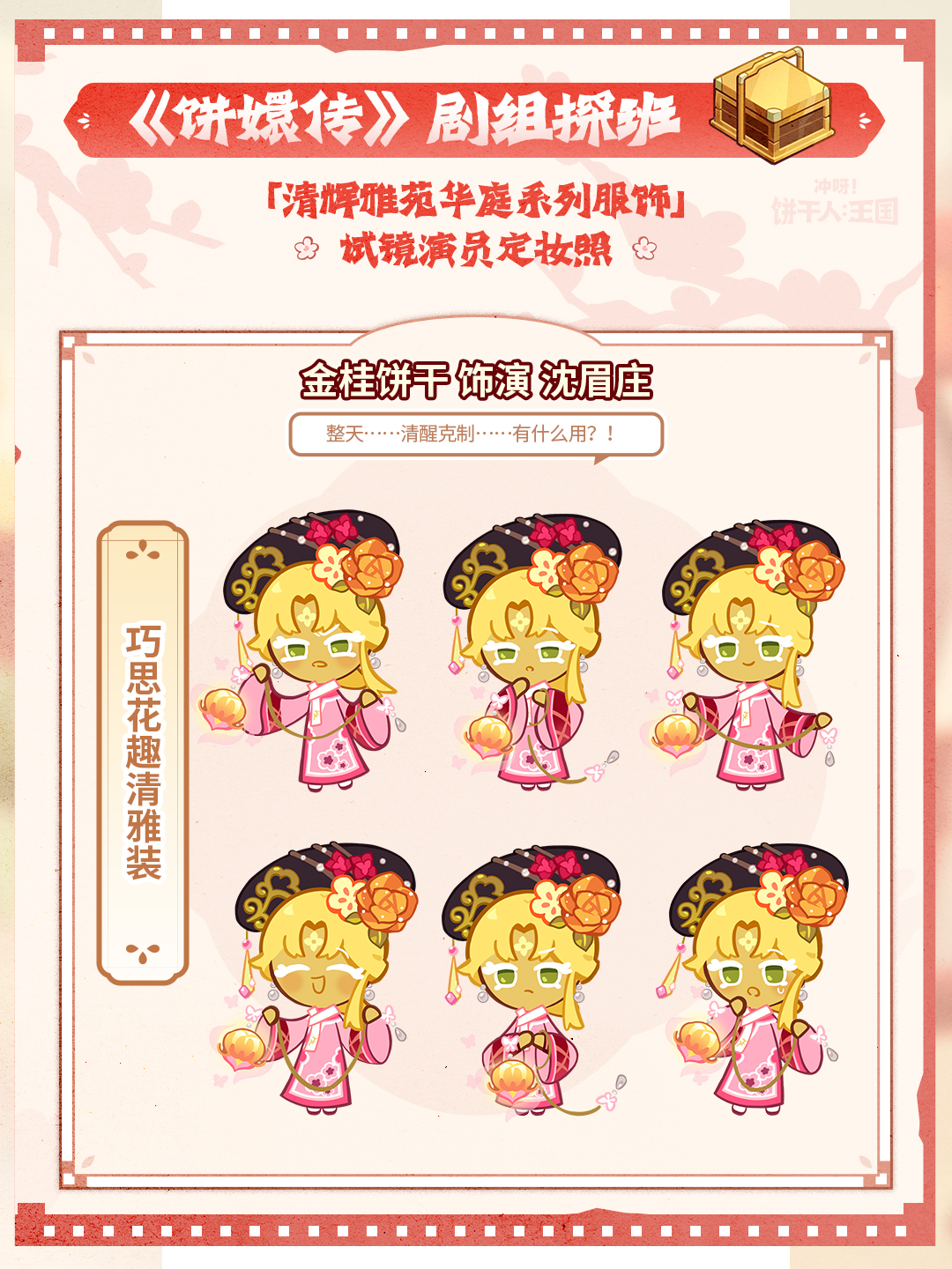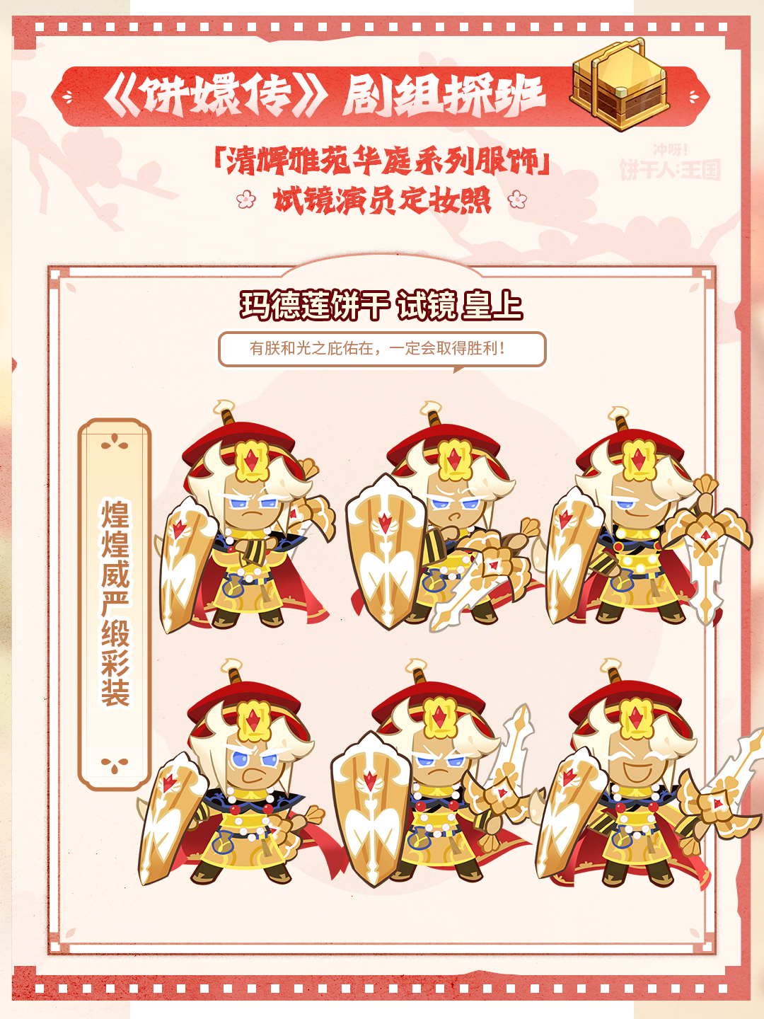 饼干们的定妆照也在此提前放送——穿着新衣服准备试镜的的饼干们,即将“戏瘾大爆发”惊艳片场,试镜片场活动也将于8月8日正式开放,也祝大家玩得开心,参与各类活跃活动,提前积累金虹方块,为8月17日的服装提前做准备!
