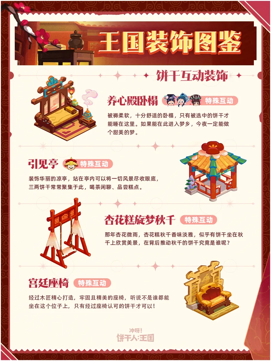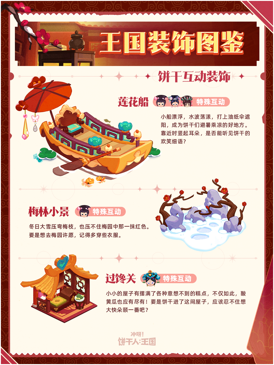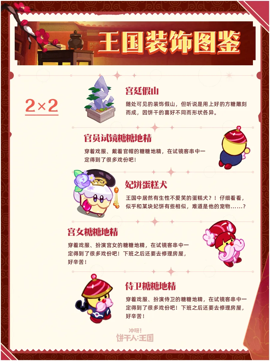 还原了鸭梨岛片场《饼嬛传》剧目的特别装饰——古朴、典雅,利用这套装饰进行搭建后,王国宛若变成了御花园,行走在这里的饼干纷纷想演绎一番,连说话也变得文绉绉了起来!