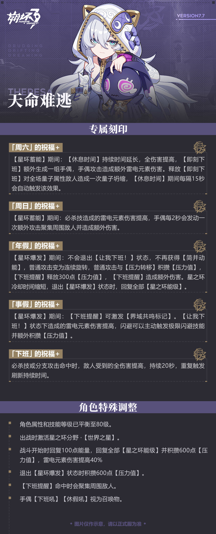 7.7版本更新后,「天命难逃」将作为可选角色加入到「往世乐土」的战斗中,请舰长通过下方长图,一起查看详细信息吧~