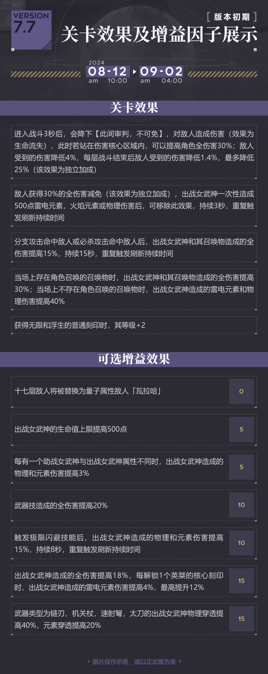 7.7版本更新后,来访者也将在「往世乐土」中迎接全新挑战,新的关卡效果及增益因子即将到来~