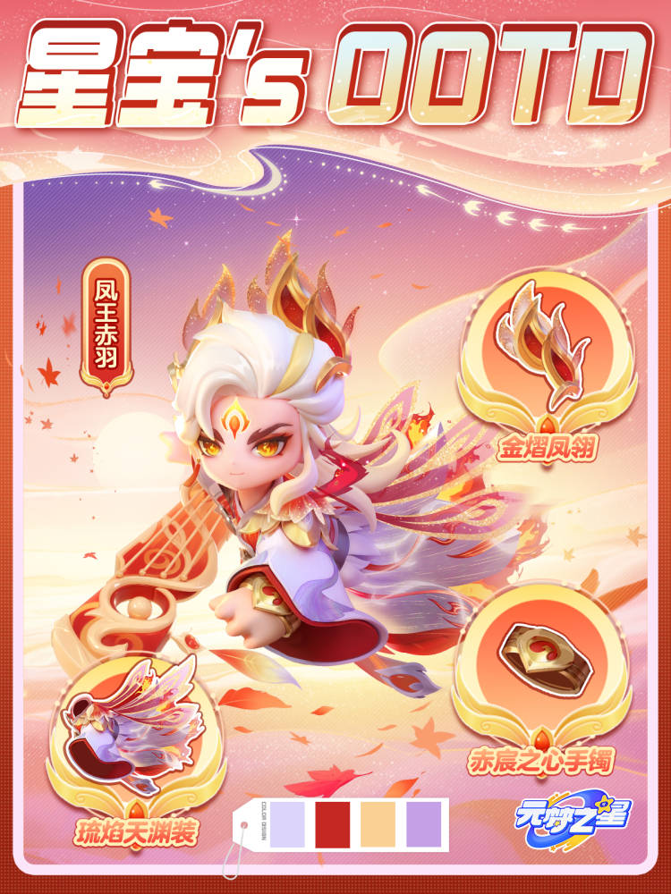 身穿琉焰天渊装,头戴金熠凤翎,赤宸之心手镯闪耀如骄阳,熠熠生辉