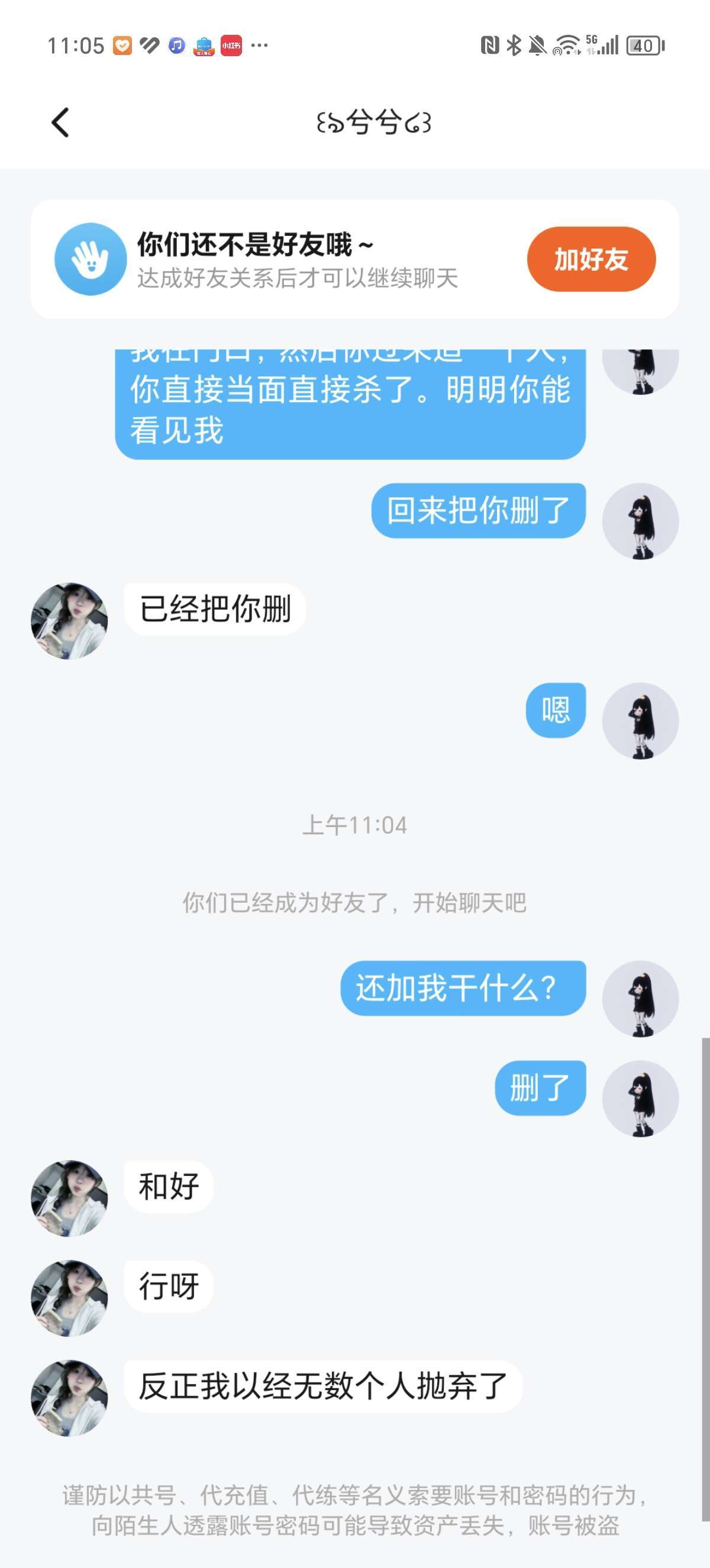 有点无雨,笑死了,杀我,我和他又和好了,然后他又杀我,然后他先删的我,后来又是他要和我和好。好玩吗??