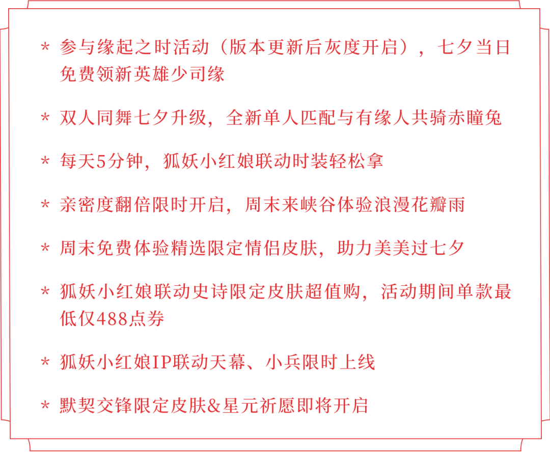 七夕福利加码,登录游戏即可限时免费体验七夕精选皮肤&英雄