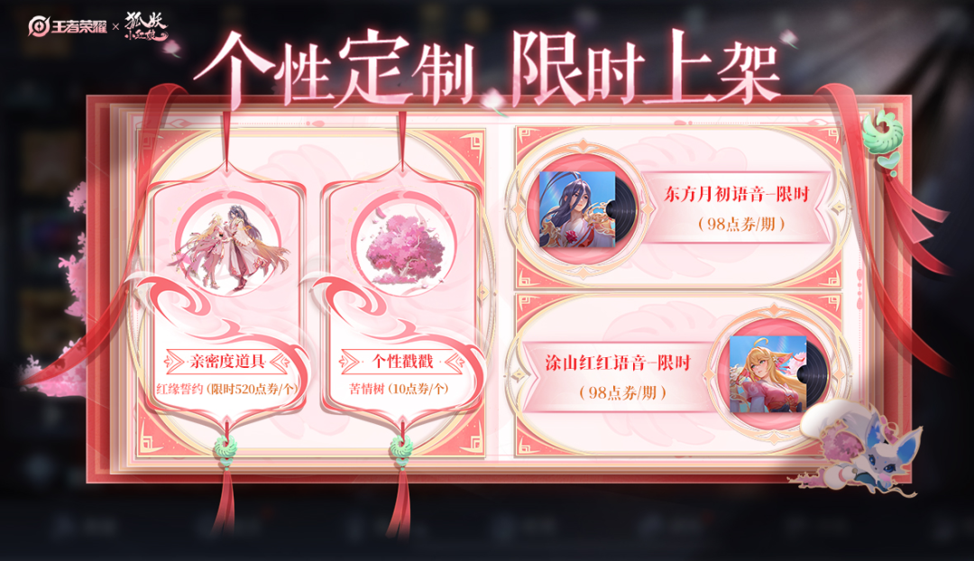 ♡ 王者狐妖小红娘联动皮肤,惊喜折扣,单款仅需488点券!