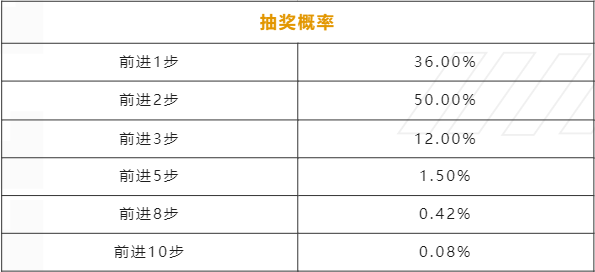 3. 前进机制:每次抽奖将随机前进1至10步,覆盖相应步数的奖励。