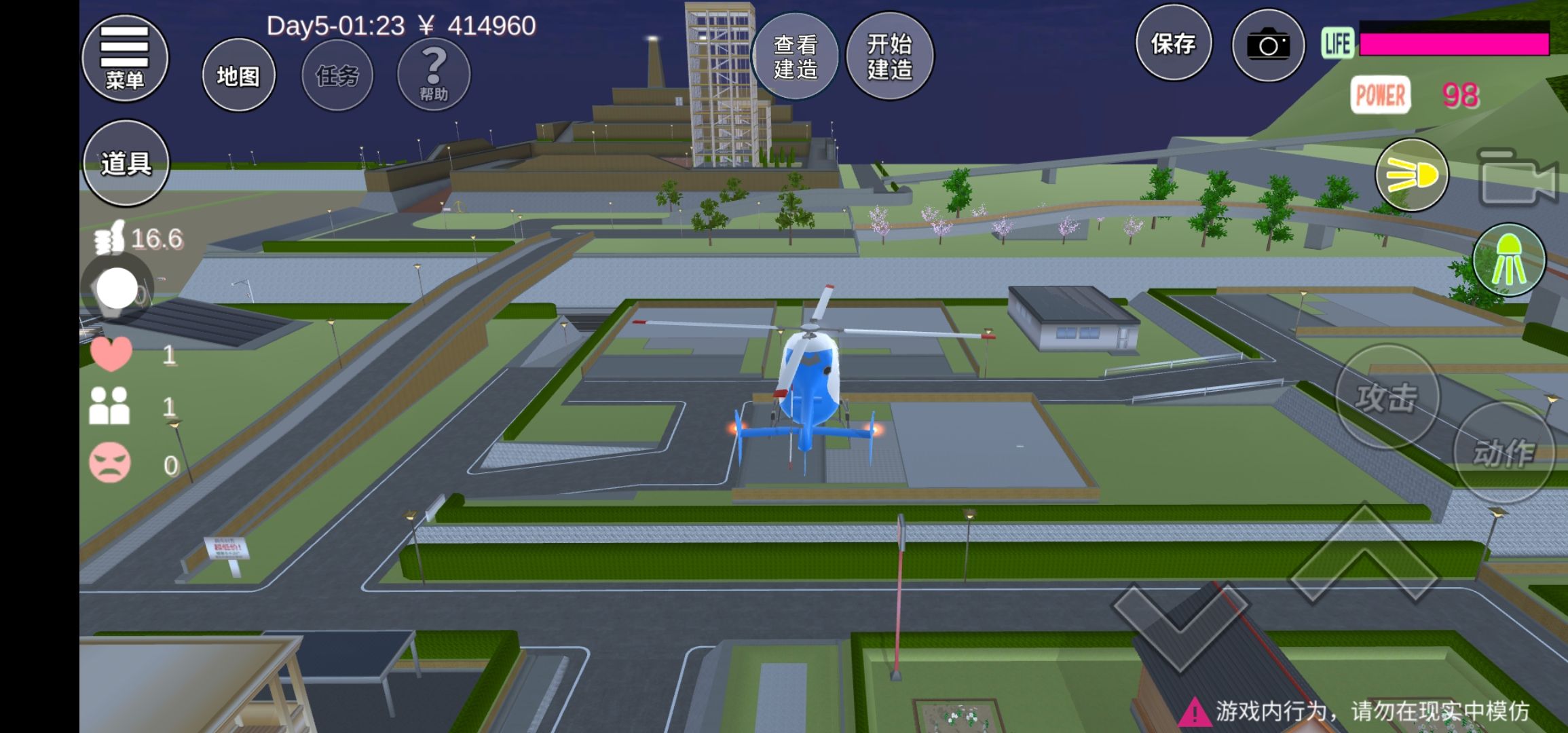 逆天.UFO太难打了给用宫殿里的直升机。结果夜里太黑不小心把豆腐渣工程给炸了.里面那些人打我被我炸了