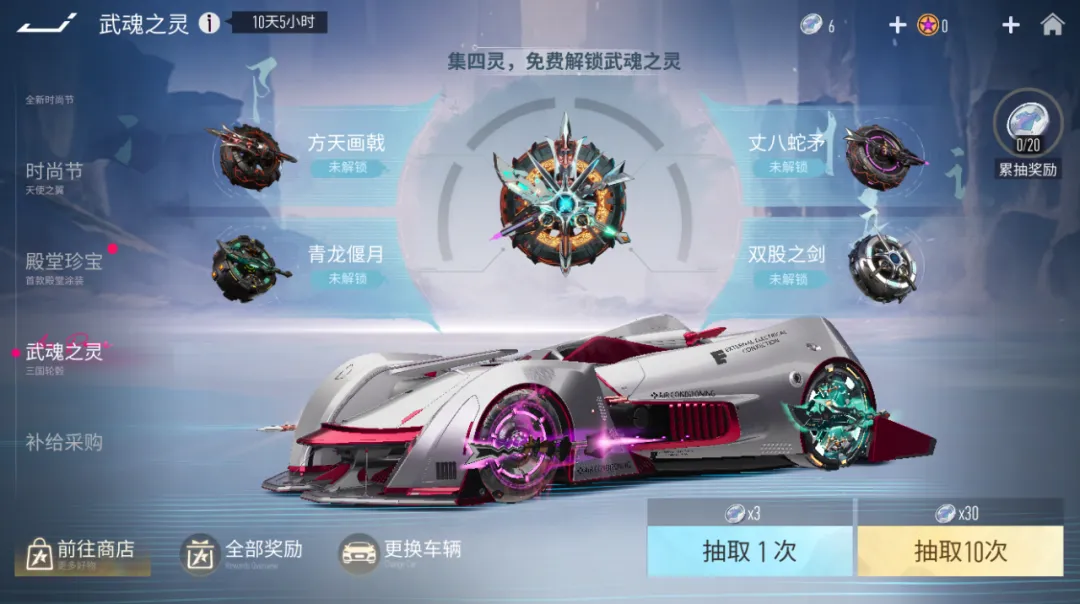 『武魂之灵 轮毂』:乱世出英雄,群雄竞逐鹿。装备后,四款武魂轮毂会依次显示在车辆轮毂的四个位置,参与比赛时,四条不同的漂移拖尾绝对可以让车手在比赛中熠熠生辉!