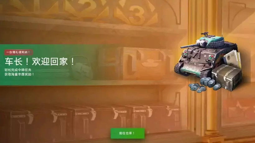 如果您是在2015年6月26日至2016年6月25日期间创建的账号 ,您会在商店找到一份特殊的订单:一个礼物集装箱,还可以从三辆特种坦克中任选一辆心仪的坦克。