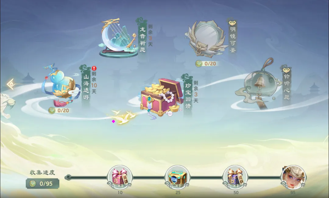 包含活动:山海遨游、龙音祈愿、珍宝回馈、明镜可鉴、铃听心愿