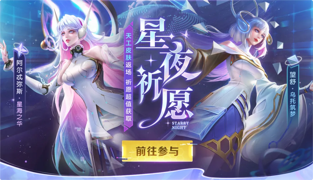 阿尔忒弥斯·星海之华、望舒·乌托筑梦天工皮肤限时返场,更有传说皮肤自选箱、回城自选箱、击败自选箱等你来拿。