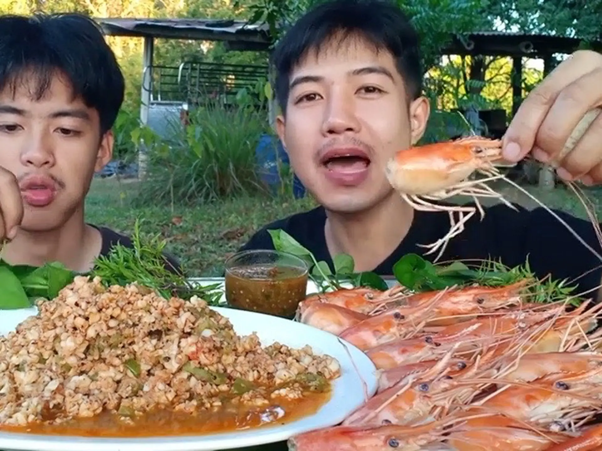 新鲜的虾肉配虾头生菜 #美食 #吃播 #泰国吃播 #吃货