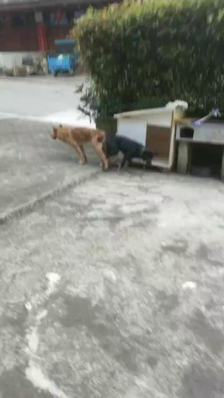 请问大家,我家的狗跟别人家的狗在干嘛?黑狗是我家的。黄狗是别人家的