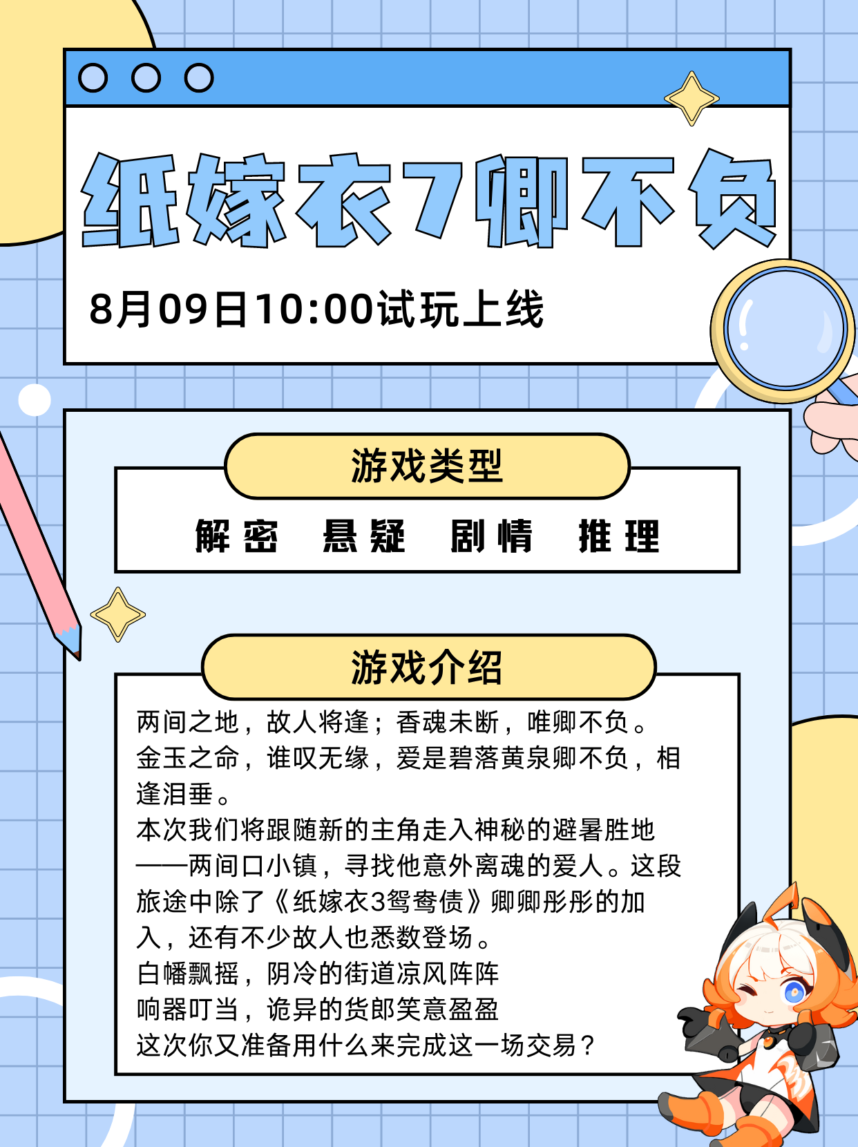 《纸嫁衣7卿不负》:它将引导我们进入神秘莫测的两间口小镇,开始一场惊心动魄的解谜冒险;