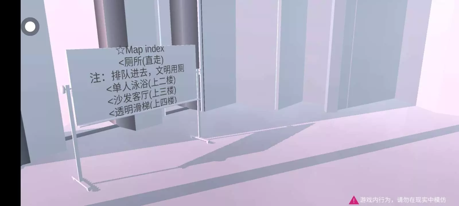 <如果不想在公共浴池里的话,还有其他地方,牌子会给大家介绍清楚👌🏻做的比较简陋别介意 ,建筑两边都有单人泳浴、休息小客厅、透明滑梯,但是厕所只有一个*͈ᴗ͈ˬᴗ͈ෆ
