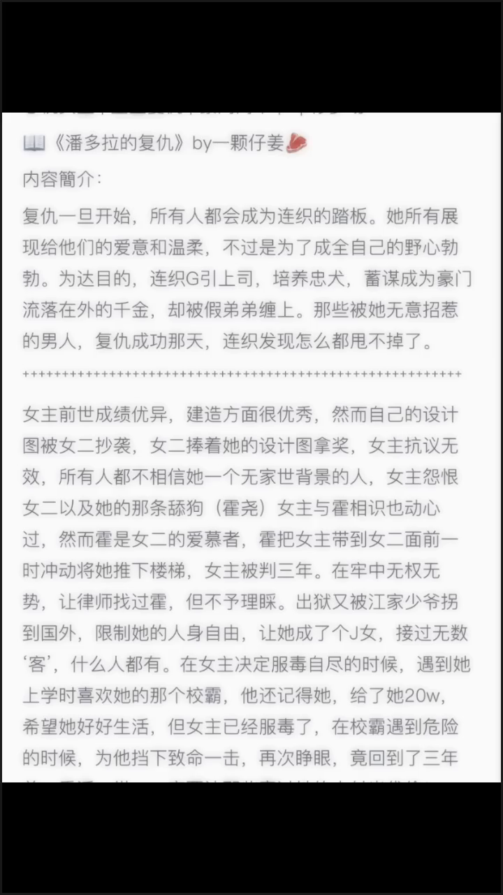 鱼,一定要给你推个文。翻了一下你的博,发现这本大火的《潘多拉的复仇》(作者:一颗仔姜 正文应该已经完结了吧)你竟然没推过。