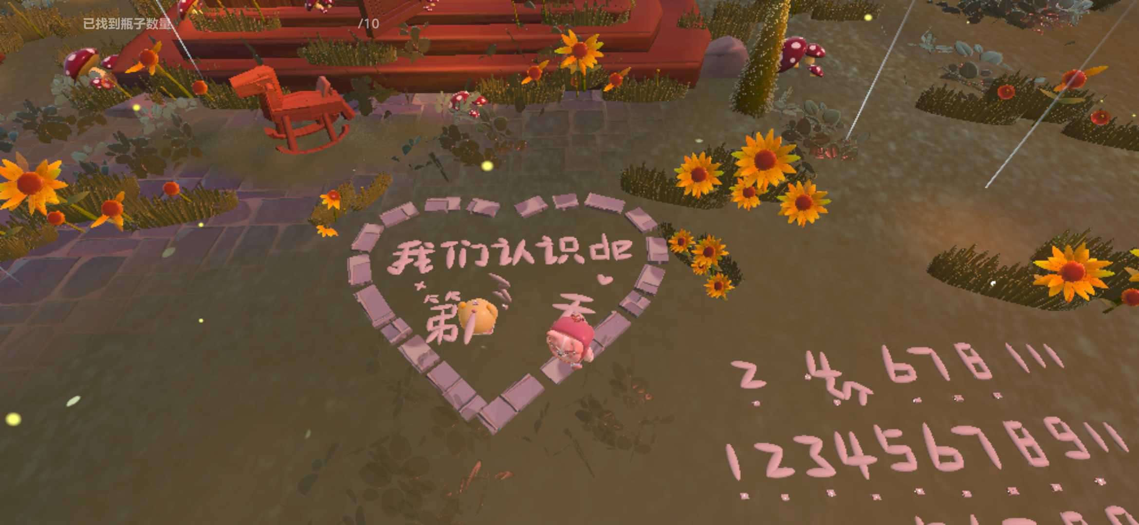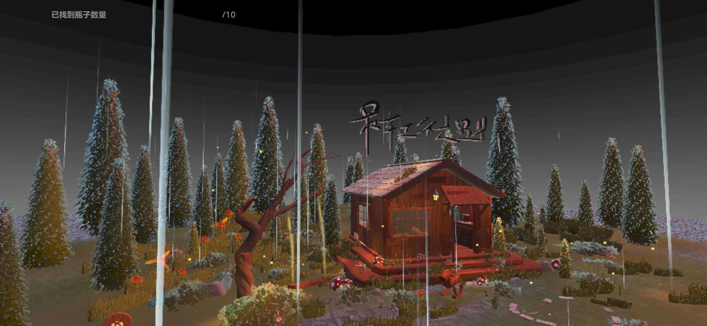 直接飞奔到这一点啦,给大家拍一下,这里是要找十个瓶子才能去下一个打卡点的,后面有很多很多的树,而且还有个枯萎的树枝,一个暖心的小屋屋,看着里面也布局也很温馨的,而且门口还有很多很多的蘑菇٩(๑^o^๑)۶